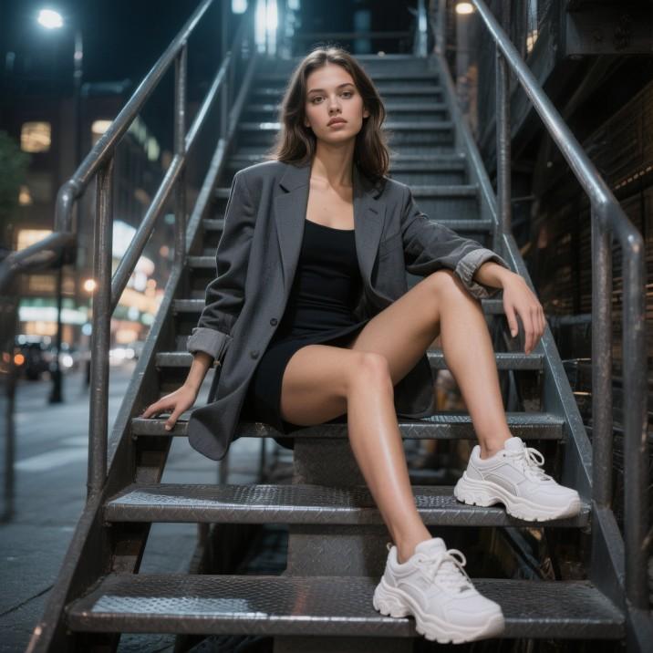 4. Mini Dress + Oversized Blazer + Chunky Sneakers