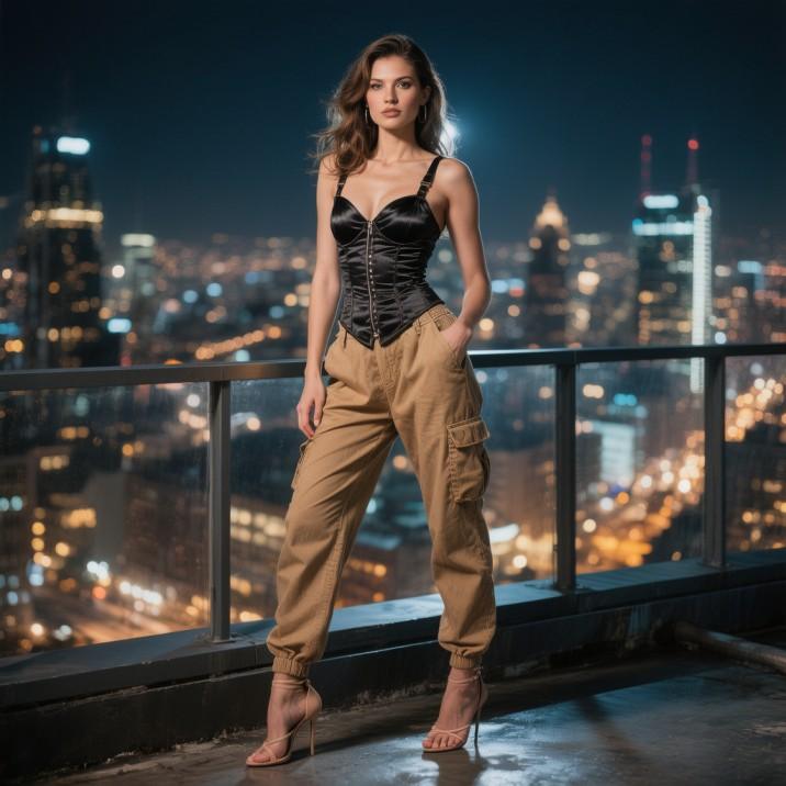 Cargo Pants + Corset Top + Heels